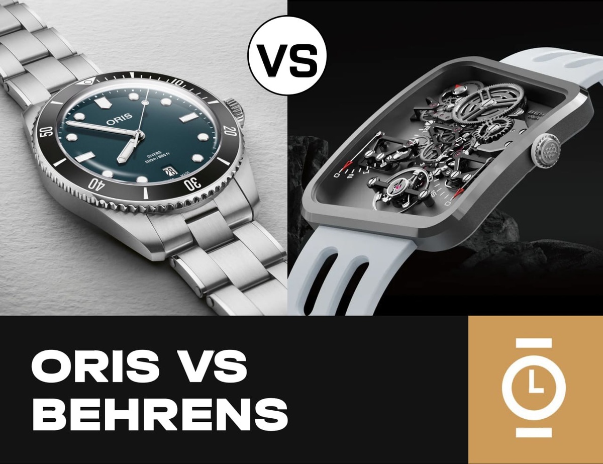 ORIS VS BEHRENS #сравнение_WD История и происхождение Oris основана в 1904 году в швейцарском Хёльштайне. Более века бренд выпускает исключительно механические часы, пережил «кварцевый кризис» и остался независимым. Оris известен своей приверженностью традициям и доступным «Swiss Made» качеством. Behrens — молодой независимый бренд из Китая. Основан в начале 2010-х как OEM/ODM ателье, в 2018 создал первую собственную модель, а потом быстро завоевал внимание экспериментами с индикацией времени и креативными механическими концептами. Философия бренда и имидж Oris делает ставку на классическую швейцарскую надёжность и демократичную роскошь: «реальные часы для реальной жизни». Часто поддерживает экологические проекты, выпуская лимитированные серии для защиты океанов. Behrens позиционирует себя как «часовая лаборатория»: акцент на нестандартных решениях, инженерной фантазии и художественной смелости. Их публика — коллекционеры и любители уникальных вещей. Дизайн и стиль Oris — стро