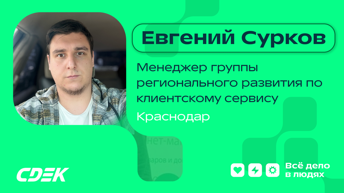 Семь лет назад Евгений начинал путь в СДЭК кладовщиком, а сегодня помогает предпринимателям Северного Кавказа развивать сервис и бизнес. О карьерном росте, переходе со склада в офис и поддержке коллег читайте в статье.