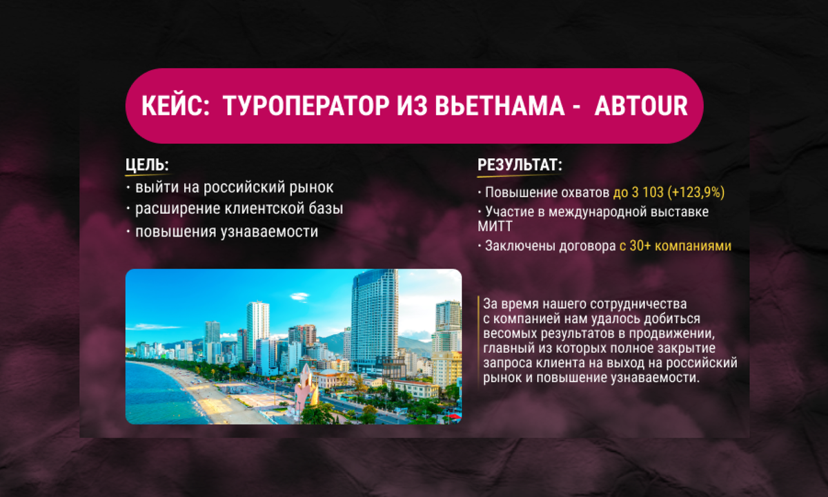 Наш клиент - принимающий туроператор ABTour, DMC во Вьетнаме. У клиента широкий выбор туристических продуктов: