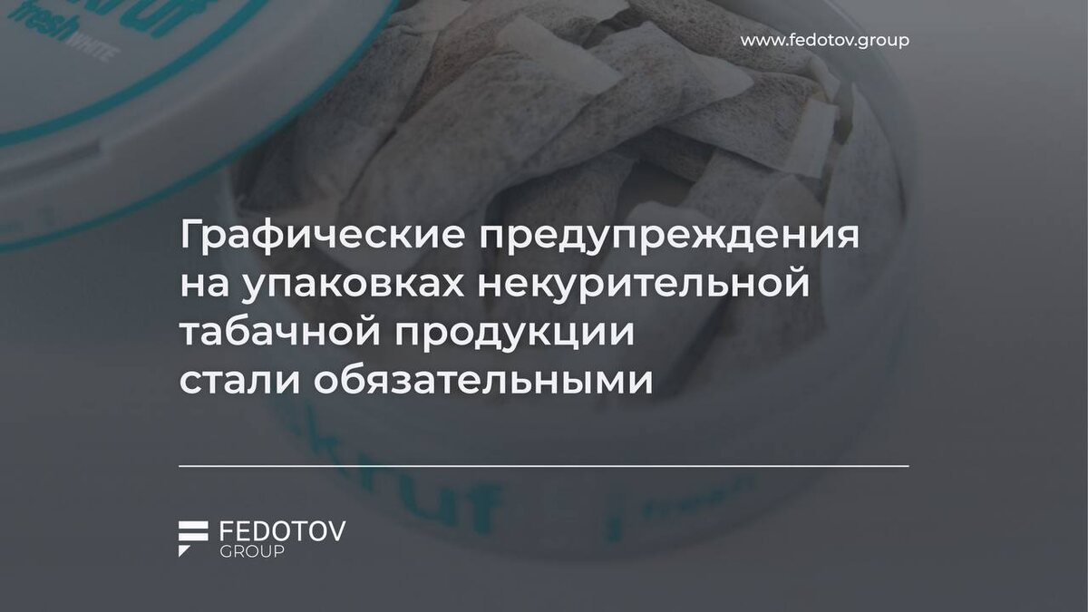 Графические предупреждения на упаковках некурительной табачной продукции стали обязательными С 1 сентября 2025 года вступили в силу новые требования к упаковке жевательной и нюхательной табачной продукции. Подробнее об этом рассказывали здесь. На упаковках допускается размещение четырех вариантов предупредительных изображений — смотрите на слайде. Каждое предупреждение содержит телефон консультативного центра помощи в отказе от табачной зависимости. Переходный период по новым требованиям к продукции продлится до 1 марта 2026 года. Для нанесения графических предупреждений срок больше — до 1 сентября 2026 года. Важно: производителям следует начать обновление упаковок уже сейчас, чтобы к установленным срокам вся продукция соответствовала новым требованиям. Данные требования утверждены приказом Минздрава и будут действовать до 1 сентября 2031 года. Получить консультацию | Дать буст | Попасть в Retail Expert