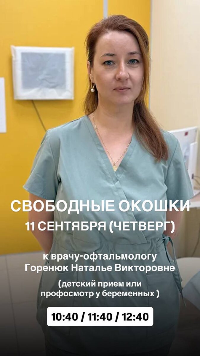 На завтра есть свободные окошки к врачу-офтальмологу 👏🏼