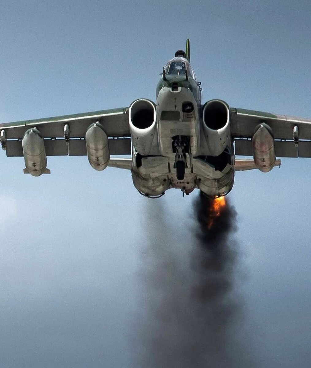 🔥Полет дракона. Почему «Грачи» плюются огнем и копотью🐦⬛ В этом кадре я поймал «покашливание» двигателей Су-25 - явление, которое может повергнуть в шок любого, кто не знаком с конструкцией знаменитого штурмовика. Нет, его не сбили. Это нормально. Сейчас объясню. Взлет таких машин иногда сопровождается эффектным выбросом черного дыма и даже языков пламени из сопел — это не неисправность, а особенность работы его ТРД Р-95Ш. Двигатель, созданный для надежной работы в боевых условиях, на малых оборотах (например, при рулении или начале разгона) временно переходит в режим богатой топливной смеси. Избыток керосина сгорает не полностью, отсюда и густой дым, а при повторном воспламенении в потоке — кратковременные вспышки. Конструктивно это связано с механизацией топливной системы: на низких оборотах форсунки подают больше горючего, чем успевает сгореть в камере, чтобы избежать перегрева и обеспечить резкий набор мощности при взлете. Система автоматически балансирует смесь по мере разго