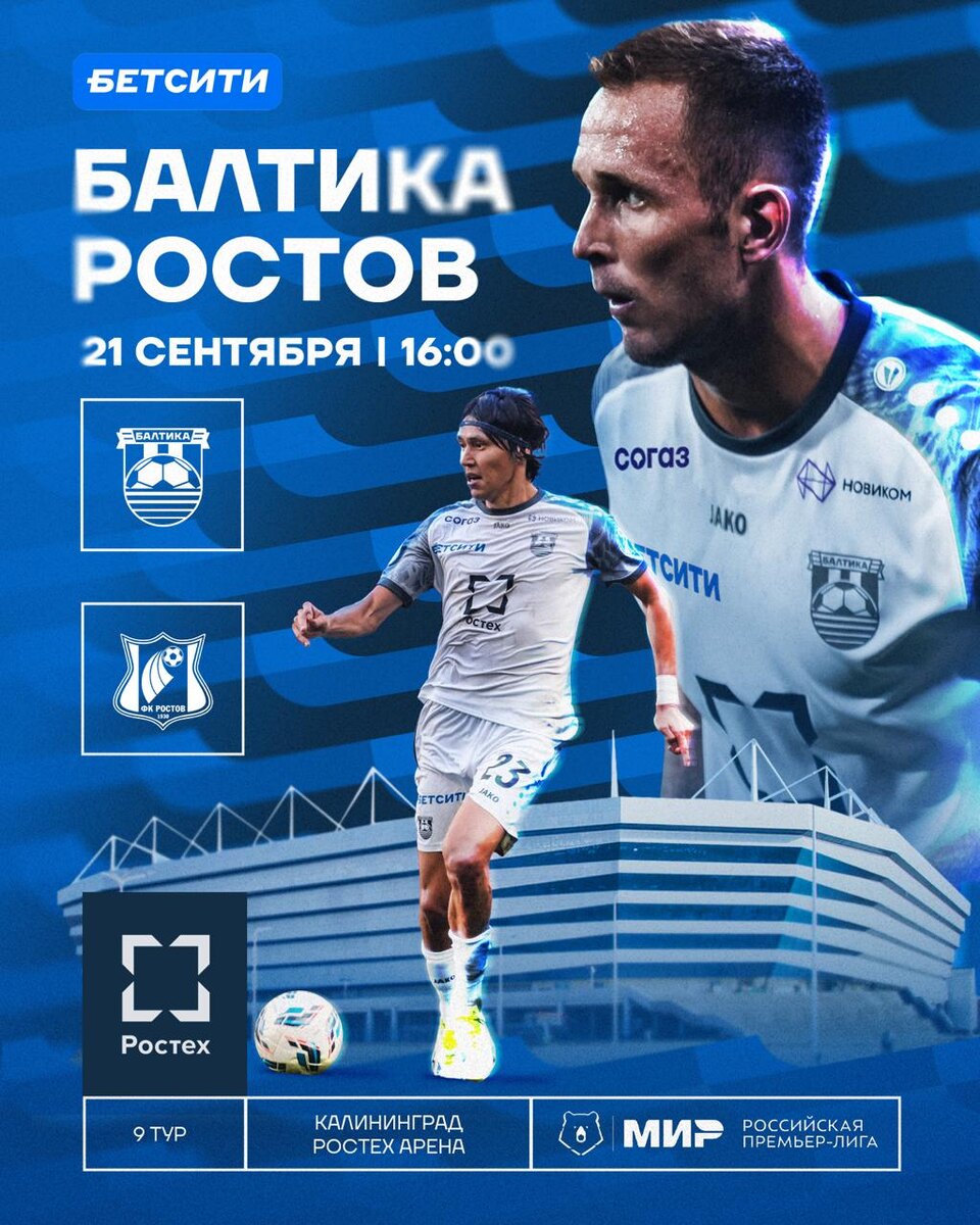 БАЛТИКА ⚔️ РОСТОВ Уже в следующее воскресенье в рамках девятого тура РПЛ сыграем с «Ростовом». Последний раз команда с берегов Дона приезжала в Калининград почти что ровно два года назад. 📆 21 сентября ⏰ 16:00 (КГД), 17:00 (МСК) 🏟️ «Ростех Арена» 🎟️ БИЛЕТЫ ⚠️ Для посещения матчей Мир РПЛ необходима карта болельщика.