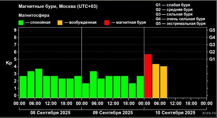 Интернет-портал лаборатории солнечной астрономии ИКИ и ИСЭФ сообщил о регистрации необычной и сложно объяснимой магнитной бури на Земле в ночь на 10 сентября. Это событие не фигурировало в прогнозах, которые накануне оставались полностью благоприятными, без каких-либо тревожных сигналов. Однако загадка кроется не столько в ошибке предсказаний (ученые, как и все люди, могут допустить неточности в расчетах), сколько в полной невозможности даже постфактум разобраться, что именно произошло на планете или в ее окрестностях, вызвав такую резкую реакцию магнитного поля. Обычно магнитные бури провоцируются внешними факторами со стороны Солнца — например, прибытием плазменных облаков или потоков ускоренного солнечного ветра из корональных дыр. Но данные по солнечному ветру за эту ночь не показывают никакого притока частиц к Земле. Даже при максимальной фантазии на кривой скорости в начале суток ничего не видно, что могло бы объяснить внезапный скачок геомагнитного индекса (он не нарастал постеп