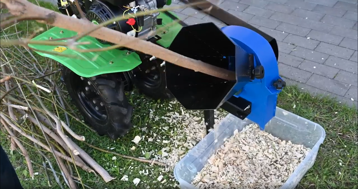 Для уборки лишних веток я использую свой веткоизмельчитель Дачный на мотоблок — устройство, которое перерабатывает древесные отходы в щепу или опил. Это не только помогает убрать мусор, но и превращает его в полезный материал для сада. Опил можно использовать для мульчирования, удобрения почвы или как подстилку для животных.