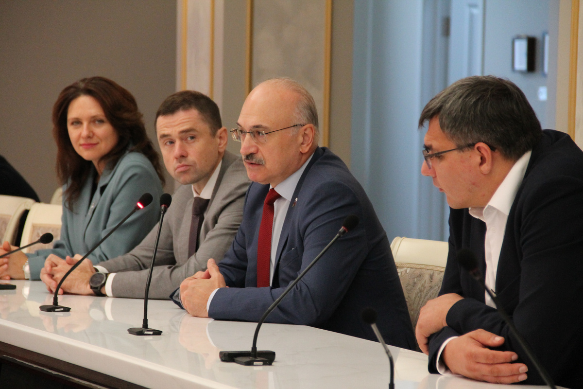 В рамках рабочей поездки в Новосибирск в конце августа текущего года председатель Комитета Госдумы по науке и высшему образованию Сергей Кабышев посетил ведущие вузы Новосибирска. Парламентария сопровождали депутат от Новосибирской области Александр Аксёненко, заместитель губернатора Новосибирской области Валентина Дудникова и министр образования Новосибирской области Мария Жафярова. В Новосибирском государственном техническом университете (НГТУ) депутаты обсудили с преподавателями ряд важных тем, среди которых были вопросы увеличения базового норматива затрат реализации программ подготовки инженеров, взаимодействие с ЦКП «СКИФ» и другие. В Сибирском государственном университете геосистем и технологий (СГУГиТ) гостям презентовали впечатляющие научно-производственные проекты: от картографирования с помощью БПЛА и создания 3D-моделей до разработки тренажеров-симуляторов, современные геодезические системы, адаптированные к суровым российским условиям, включая Арктику. Руководство вуза пре