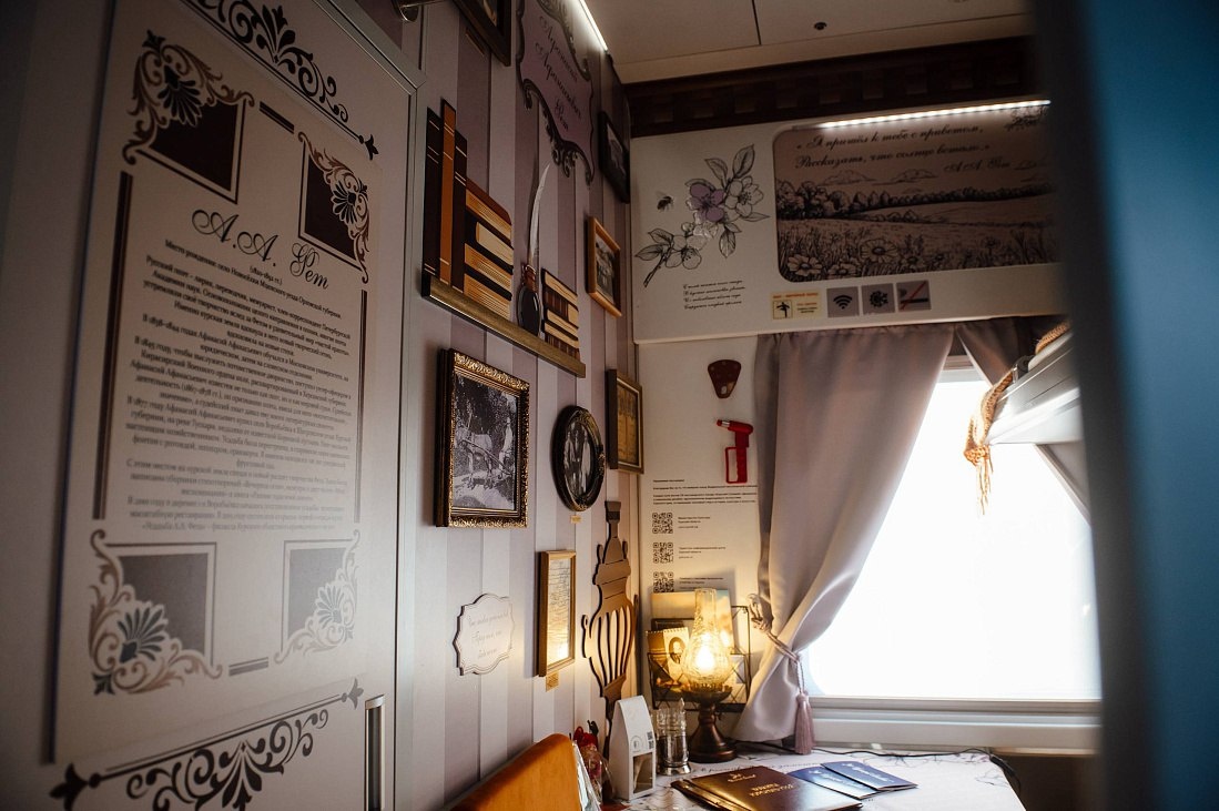 Он начнет курсировать по маршруту Курск — Москва ежедневно. Расписание сохранилось: старт из Курска в 22:15, в столице — уже в 06:21. Обратный рейс примерно в то же время. Удобно для тех, кто работает. Фишка поезда — музейный вагон. Каждое купе посвящено известным жителям города. Среди них — Аркадий Гайдар. Пассажиры во время пути могут оказаться на чердаке у Тимура и его команды. В соседних купе — печатная машинка Даниила Гранина или театральные заметки великого Щепкина. Есть и детское купе. Кому актуально? Ждали? 📸 РЖД #насвоихдвоих_ржд