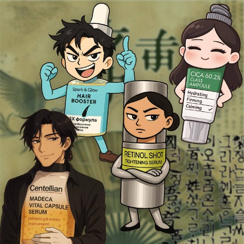 ✨Если бы сыворотки были персонажами дорамы✨ 🎬 Представьте сериал, где герои — баночки с характером. У каждой свой сюжет и хэппи-энд: 👩🎓 Celimax с ретинолом (WB #287471808 / OZON #1719723682) — строгая, но заботливая старшая сестра. С идеальной осанкой и чётким планом: разгладить морщины, подсушить прыщи и научить дисциплине SPF. Та самая героиня, у которой за строгостью скрывается море нежности. 🔥 Spark&Glow для роста волос (WB #439166044 / OZON #2260043312) — «харизматичный главный герой». Вечные эмоции, энергия и немного перца в характере. Он укрепляет, запускает рост и гарантирует, что ваша история больше не будет про выпадение. 🌱 Derma Factory Cica Ampoule (WB #145687043 / OZON #840578117) — лучшая подруга. Успокоит, снимет покраснения и напомнит: «Тебе не нужен токсичный парень, тебе нужна регенерация». 💎 Centellian24 Madeca (WB #255813850 / OZON #1695792761) — «таинственный second lead», всегда приходит в нужный момент. Восстанавливает силы, возвращает сияние и тайно