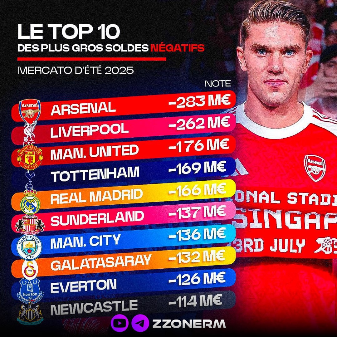 📉Топ-10 клубов, ушедших в "минус" по итогам летнего ТО @мировой Футбол