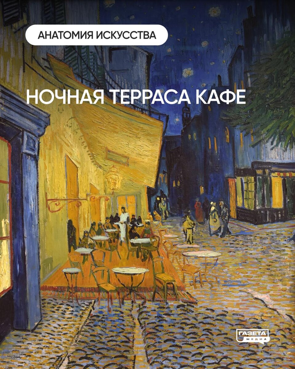 Когда ночь засияла цветом Картина «Ночная терраса кафе» — одна из самых узнаваемых работ Ван Гога, в которой будничный городской пейзаж превращается в философскую притчу. Художник задумал ее как эксперимент с цветом и светом: он хотел показать, что ночь может быть не только темной и мрачной, но и сияющей яркими красками. Кафе на площади Форума в Арле, существует и сегодня, хотя пообедать там не получится. Но не стоит расстраиваться: здание сохранило свой облик, и к нему можно подойти, чтобы увидеть место, вдохновившее Ван Гога. Сейчас полотно хранится в музее Креллер-Мюллер в Нидерландах, в собрании, где представлены десятки его шедевров. Оно неоднократно появлялось в книгах о Ван Гоге, включая фильм «С любовью, Винсент», снятый по письмам его брата Тео. Несмотря на тяжелую жизнь и ментальные болезни, Ван Гог стал легендарным художником, а его работы — символом постимпрессионизма. #газета_анатомия_искусства