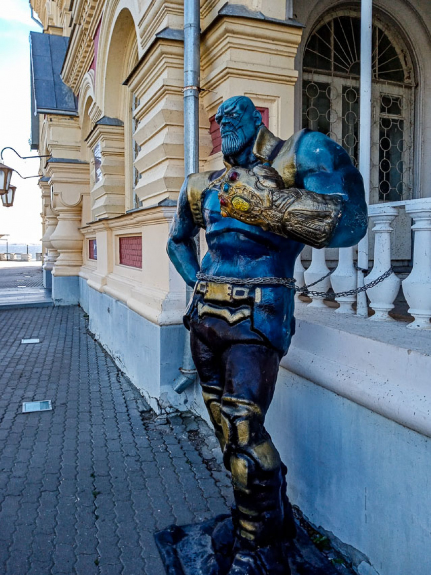 Читатели спрашивают нашу редакцию, зачем установили яркую фигуру героя мультипликационных фильмов у историко-краеведческого музея в Камышине.