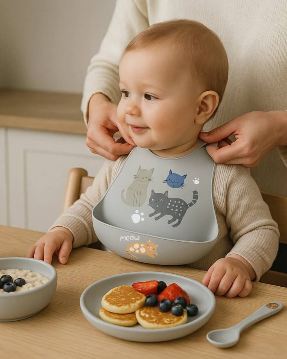 ✨ Новинки посуды LUKNO Первый прикорм или первые попытки есть самостоятельно — всегда маленькое приключение.LUKNO делает его красивым и удобным. В наборе — тарелка, миска, поильник со съёмной крышкой, ложечка и мягкий нагрудник с кармашком. Всё из безопасного силикона, который легко мыть и удобно использовать каждый день. Практичный must-have для первых приёмов пищи🤍 На первом фото: Набор силиконовой посуды LUKNO, серый На втором фото: Набор силиконовой посуды LUKNO, зелёный