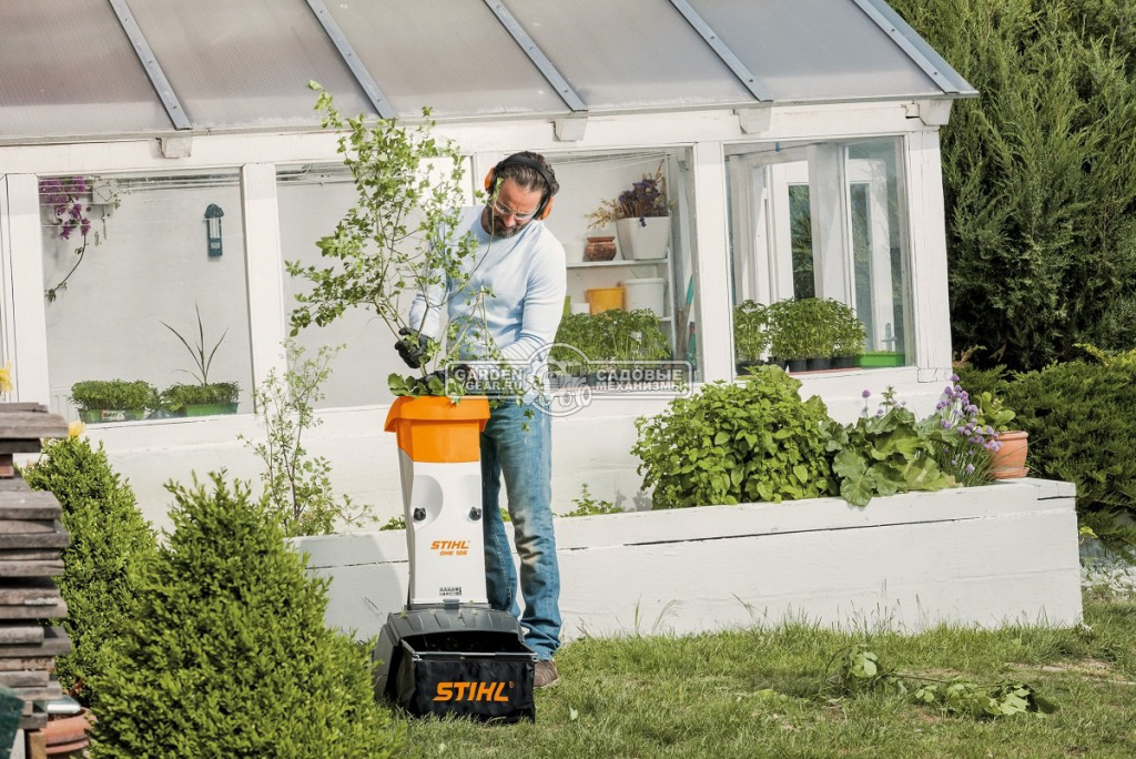 Уже по названию понятно, что эта модель родом из Германии. Причем не только в плане происхождения бренда, но и производства. То есть, это – тот редкий случай, когда и агрегат произведен не в Китае, а в Европе и при этом все еще доступен в официальной продаже в России. Но интерес для нас не только в этом, но и в том, что в нем реализован двухкамерный принцип измельчения: у верхней камеры широкий загрузочный бункер, предназначенный для подачи влажных, мягких или сухих материалов – от веточек до цветов и овощей с ботвой. У нижней – узкий, для подачи веток толщиной до 4 см. Ветки не только нарезаются на мелкую фракцию, но и принудительно «раскрываются», создавая более благоприятную среду для работы микроорганизмов и, как следствие, более быстрого их превращения в плодородный компост.