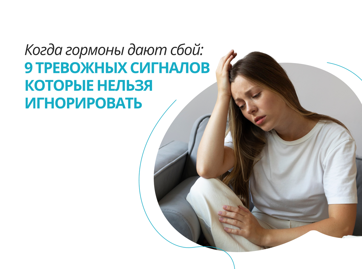 От настроения и сна до кожи, веса и фертильности — гормоны влияют почти на всё. И если в теле что-то сбилось, оно обычно подаёт сигналы. Главное вовремя их распознать. – Менструации пропали на 2 цикла и больше; – Цикл «скачет» более чем на 3 дня; – Месячные стали слишком обильными или длятся дольше недели; – Кровянистые выделения вне периода менструации; – Сильная боль, которую не удаётся снять без обезболивающего; Стоит насторожиться, если привычный ритм резко изменился. – Беременность не наступает в течение года при регулярной половой жизни без контрацепции; – Были два и более выкидышей на ранних сроках; Если зачатие не происходит дольше 12 месяцев — лучше обсудить это с врачом. – Угревая сыпь и жирность кожи, несмотря на уход; – Выпадение волос: особенно на макушке, висках, в бровях; – Рост жёстких тёмных волос в нетипичных местах (лицо, живот, грудь); – Тёмные «бархатистые» участки в кожных складках; – Фиолетовые стрии без резких скачков веса. – Вес растёт или падает без очевидной