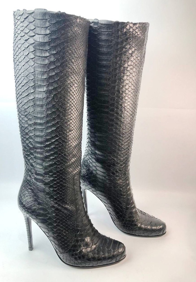 Женские сапоги из кожи питона на каблуке 10см, мягкие и легкие