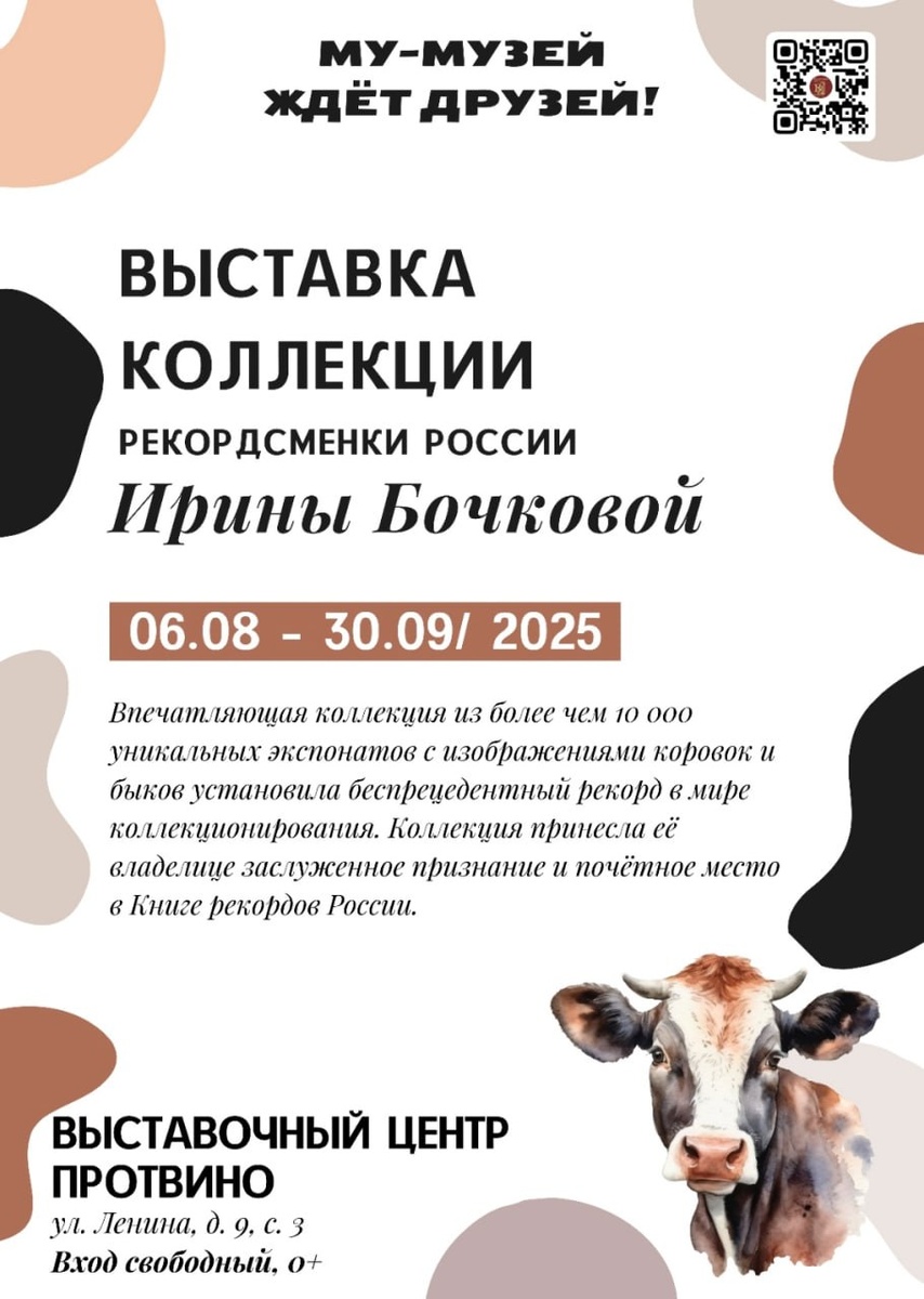 ✨ Приглашаем на выставку 🐮Выставка уникальных экспонатов с изображением коровок и быков Ирины Бочковой. Насчитывает более 10 тысяч предметов. ❗Коллекция занесена в Книгу рекордов России. Работает до 30 сентября 🚫 Возраст: 0+ 📆 30.09.2025 🏢 Выставочный центр "Протвино" 📍 г.о. Серпухов, г. Протвино, ул. Ленина, д.9 💰 Вход свободный❗️ ⭐Поддержать канал голосом 💰 Вакансия - курьер в Серпухове ✅ Мероприятия Серпухов https://dzen.ru/id/66f01c6eb4c6fe60c9ca1608 http://vk.com/serpukhov_events http://dzen.ru/serpukhov_events