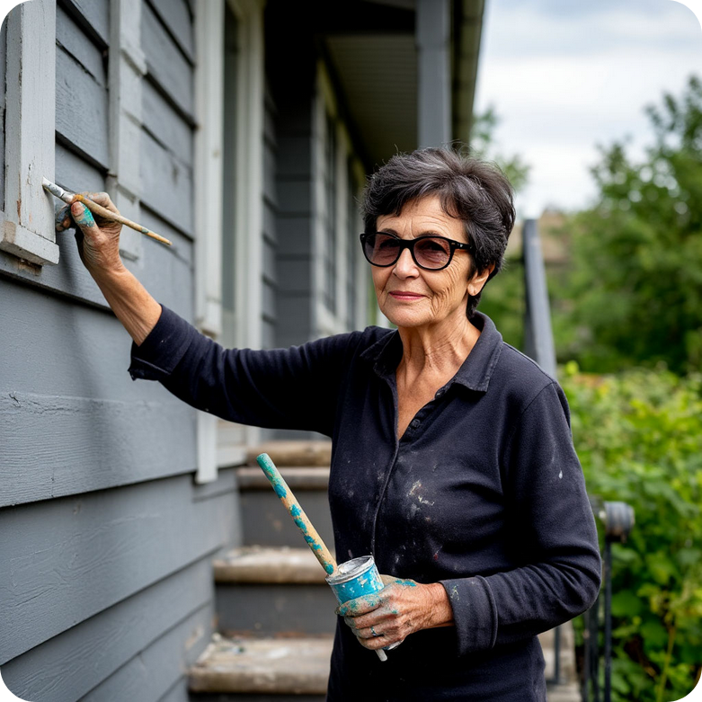 — Я еще не закончила, — невозмутимо заявила Валентина Петровна, уперев руки в боки. — Ты что, думаешь, я одну стену оставлю такой? Она же как бельмо на глазу будет. Я сегодня фронтон докрашу и займусь боковой стеной.