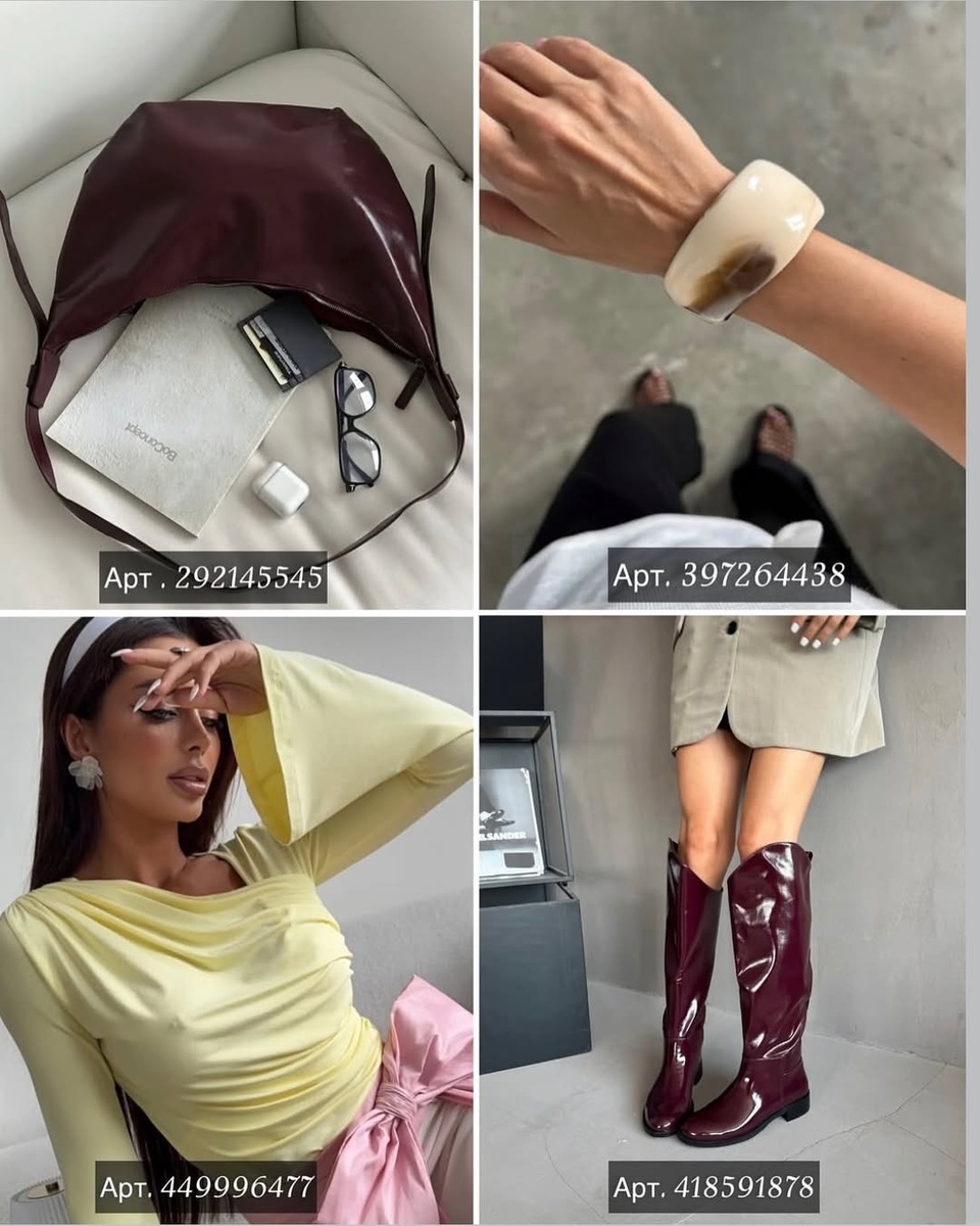Гладкая кожа, благородная «вишня», графичный чёрный и сливочное айвори — из этой подборки вы соберёте образы на офис, прогулку, поездку и вечер. Иду строго по порядку с артикулами с фото: у каждой вещи — ключевые детали, как носить и совет стилиста.