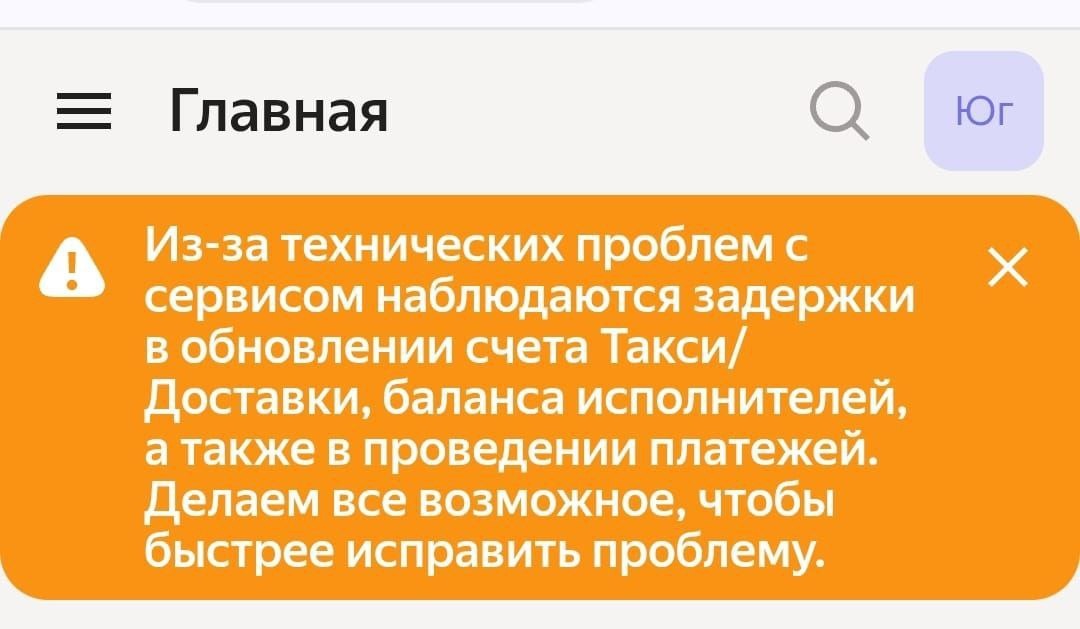 Из-за технических проблем с сервисом наблюдаются задержки в обновлении счета Такси/Доставки, баланса исполнителей, а также в проведении