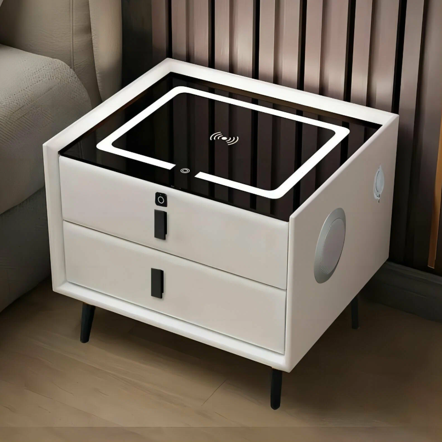 Эта тумба умеет всё: заряжает телефон без проводов, играет музыку и открывается по отпечатку пальца. Футуристичный обзор