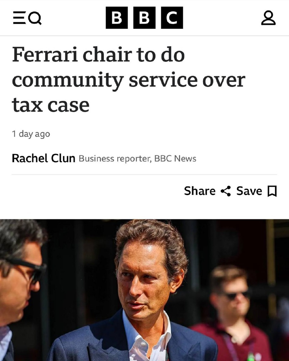 🤩Глава и совладелец Ferrari будет работать дворником целый год. Он согласился на общественные работы из-за неуплаты налогов на наследство бабушки в €1 млрд.