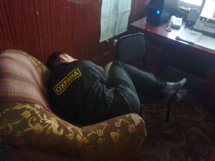 Но чаще на стрёме стояли чтобы не проспать проверяющего. От охранного агентства начальник или зам начальника смены периодически проезжал по точкам ночью и проверял, что сторожа бдят, а не спят, не бухают и не занимаются иными непотребствами. Я как-то раз так почти проспал)) Начальник смены несколько минут барабанил в дверь, хорошо, что я просыпаюсь быстро и в полном сознании)) Прибежал, отговорился, мол, был на обходе в дальнем коридоре)) Не факт, что он поверил, но я не бухал, приходил вовремя, нареканий ко мне не было, поэтому придираться не стал.