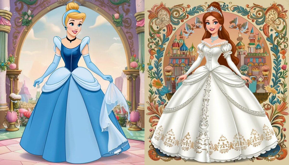 - — "Золушка" отражает европейские дворцовые традиции с акцентом на роскошь (кареты, балы, хрустальные туфельки).