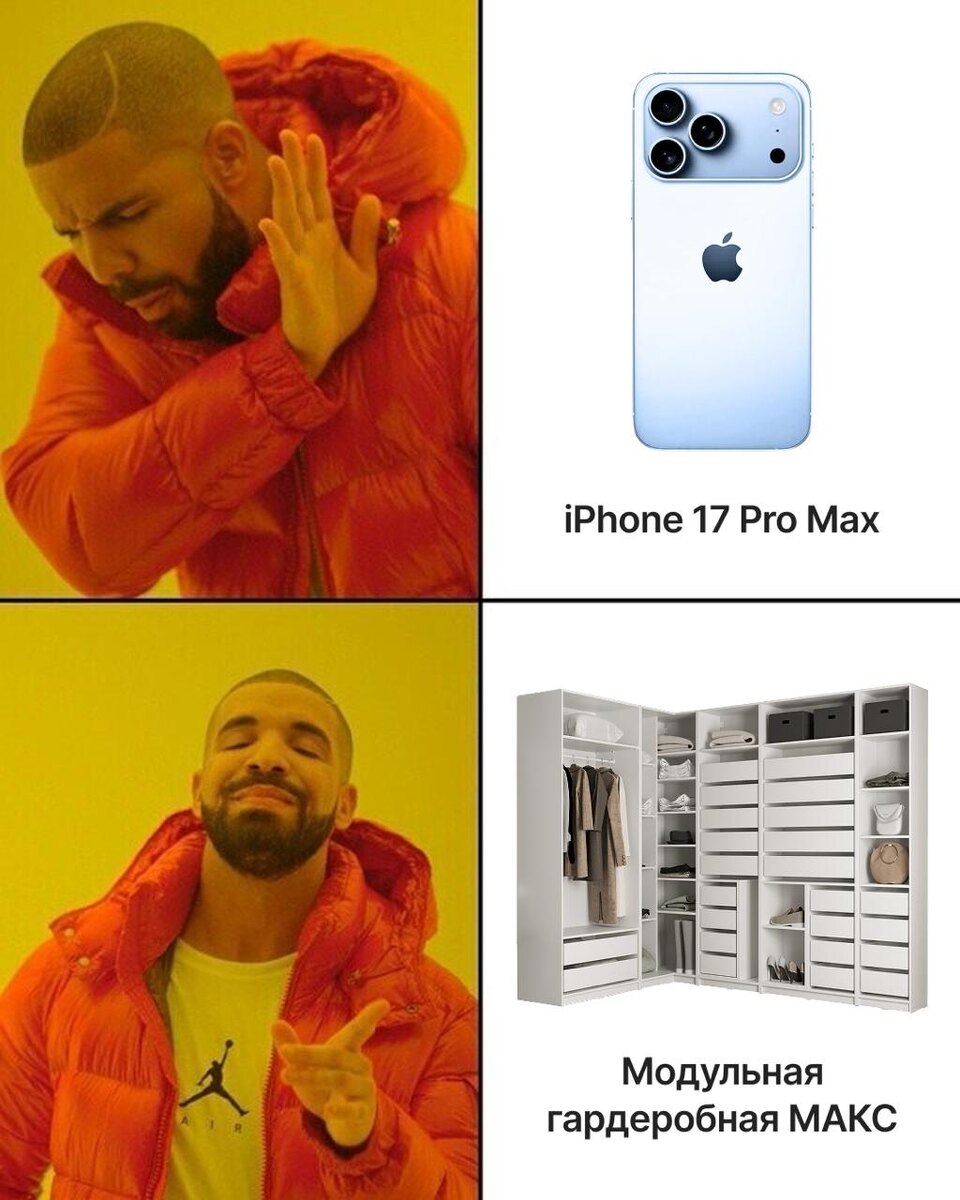 👍👍👍👍👍 Видите, даже Дрейк осознаёт, что выгоднее купить модульную гардеробную МАКС в Гуд Лакк Потому что это дешевле, практичнее и вещей туда много вмещается. А в айфон пальто, три пары брюк и постельное бельё не уберешь... Так что думайте...