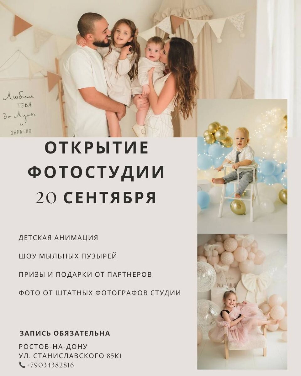 Скоро открытие детской и семейной фотостудии в Ростове-на-Дону