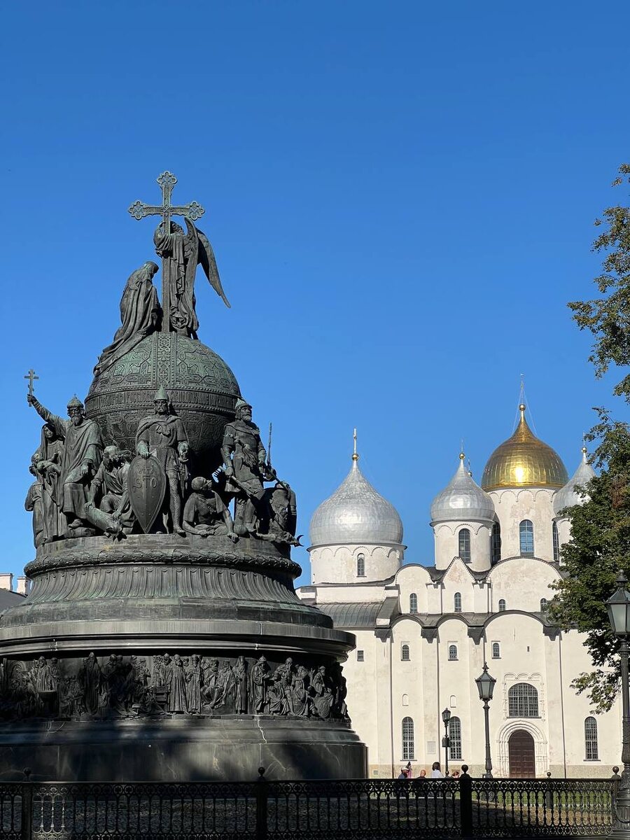 В самом сердце древнего Великого Новгорода, словно величественная каменная летопись, возвышается Памятник «Тысячелетие России». Его форма напоминает царскую «шапку Мономаха» и создан он в память о непрерывной российской государственности. Идея и воплощение