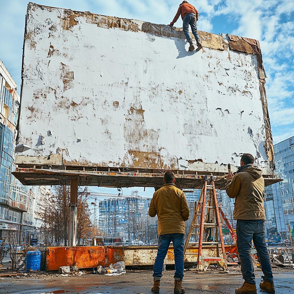 Как я и обещал, расскажу вам немного о бессмертных наших геройствах, совершенных во время монтажа высотной рекламы. А почему бы и нет? Есть полезные дураки, а есть бизнес, который должен приносить прибыль. Почему бы не послать дураков на неисполнимые внешне задания? Работали мы безо всякого инструктажа по технике безопасности, из инструментов - молоток, степлер и лестница. Которая была явно короче, чем нужно. Правда, это компенсировалось нашей лазучестью. Поскольку у нас не было спецовок и креплений для инструментов, они у нас постоянно падали. Помню, уронил молоток нечаянно, а друг детства внизу констатировал, что он пролетел в 20 сантиметрах от его черепа.... И вот послали нас (уж послали так послали) монтировать рекламный плакат на билборд... без фанеры. Просто рама, в центре пустота. Вокруг бурьян и торчащая арматура - падать с высоты третьего этажа будет весело. Советский цирк умеет делать чудеса, да и мы были не промах. Лазили, как обезьянки, по этой раме, зашнуровывая баннер со