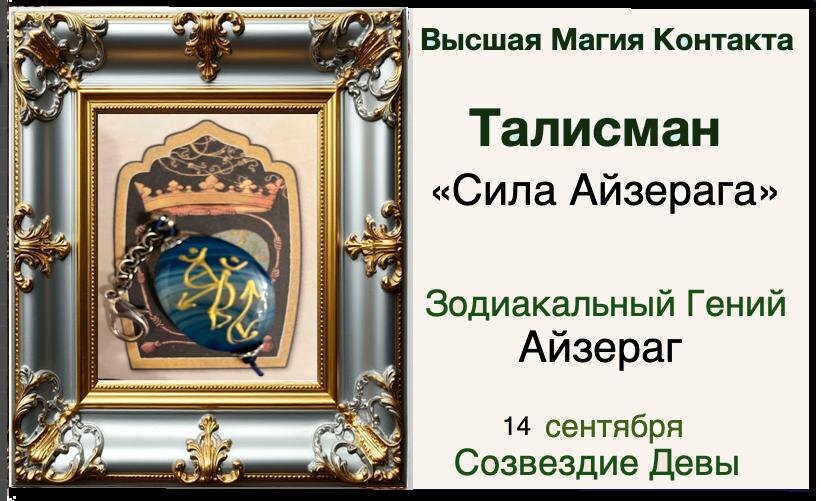Талисман «Сила Айзерага» — это магический инструмент, артефакт Зодиакального Гения Айзерага из созвездия Девы, покровителя всех, кто родился 14 сентября (солнце 21 градус Девы), а также тех, кто стремится получить его защиту и благословение. Зодиакальный Гений Айзераг известен как щедрый даритель благосостояния и удачи. Его влияние охватывает все сферы, связанные с играми, соревнованиями, ставками и различными начинаниями. Он растит в своих подопечных характер, сосредоточенный на общественной деятельности, наделяя их патриотизмом и страстью к служению. Однако часто это сочетается с избыточной критичностью, что заставляет их погружаться в общественные дела и использовать все свои таланты для их продвижения. Айзераг наделяет подопечных универсальными способностями, которые можно применять как в своей основной профессиональной деятельности, так и в различных других сферах. Таким образом, каждый, кто находится под его покровительством, может ожидать успеха и удачи в своих начинаниях. Для