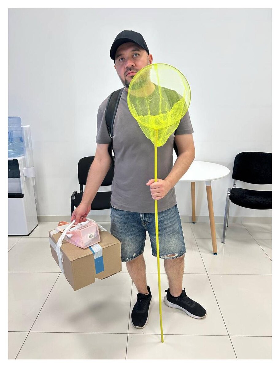 Вот так я выглядел, когда ехал из «Парка бабочек» в ТРК Питерлэнд, на студию в другом конце города. Единственное, о чём пожалел, что не надел футболку со своей рекламой. Потому что внимание я поймал абсолютно от всех прохожих, сотрудников метро, детей и взрослых. Думаю, и сам бы улыбнулся, если бы увидел взрослого парня с большим ярким сачком для бабочек. На саму съёмку ушло всего минут 20–25, всё остальное время мы охотились за бабочками. Приходилось включать серийную съёмку, чтобы поймать хоть какой-то кадр. Но в этом и есть кайф работы фотографа, ты постоянно оказываешься в ситуациях, которые в обычной жизни даже не попробовал бы. Честно, сам я вряд ли пошёл бы смотреть на бабочек просто так, но очень ошибался. Находиться среди множества живых бабочек это невероятное ощущение, ты будто выпадаешь из рутины и попадаешь в маленький другой мир. И ещё один кайф - с камерой в руках тебе открываются совершенно разные двери. Ты встречаешь людей, попадаешь в необычные места, реализуешь идеи,