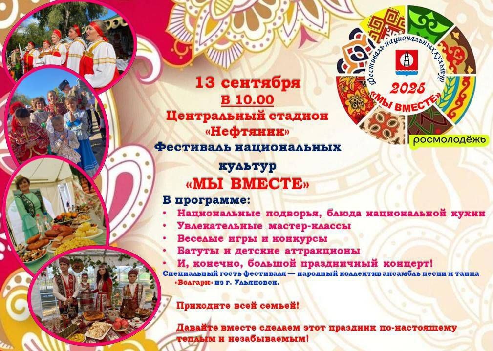 Уважаемые жители и гости Новоспасского района! 🎉 Уже совсем скоро, 13 сентября, в нашем районе пройдет один из самых ярких и душевных праздников — ежегодный Фестиваль национальных культур «Мы вместе!» 🥳 Это тот самый день, когда мы все становимся одной большой и дружной семьей! В программе: 🎪 Национальные подворья с угощениями 🎨 Мастер-классы и конкурсы 🛒 Выездная торговля (шашлык, напитки, сладости) 🎠 Аттракционы и батуты для детей Кульминацией праздника станет большой праздничный концерт с участием творческих коллективов поселений района и народного коллектива — ансамбля песни и танца «Волгари» из г. Ульяновск! Ждем вас 13 сентября на Центральном стадионе «Нефтяник»! Начало работы всех площадок — в 10:00. Приходите всей семьей! Будет ярко, вкусно и очень душевно! ❤️