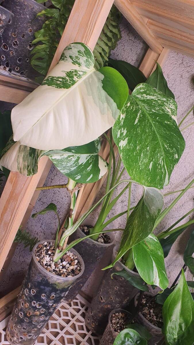 Просто начну по порядку... Как я уже рассказывала, у меня пару раз погибала вся коллекция моих растений. И сегодня я решила вам показать небольшой обзор тех растений, которые у меня живут на данный момент. Монстера Альба Одна из жертв домашнего насилия. Пострадала в мой второй отъезд. Жертву первого спасти не удалось. Увы… Погибла полностью, но при осмотре корней поняла, что возможно там есть почка. И сам корень подает надежды. В общем все обрезала и не ошиблась. Потихоньку очухалась и пустила росток. Сегодня уже радует несколькими листами. Надо отдать ей должное, не портит листья совсем. Даже самый первый до сих пор жив. Но пока не увеличивает размеры листа и не режет их. Будем ждать. Алоказия Пинк Дракон (?) Тоже спасенная. В горшке было два растения. Больше двух листов никогда не держала. Как только намечался третий, первый моментально погибал. И вот ее залили-засушили. На нее никаких надежд не возлагала. Поковыряла, поскоблила… Даже из горшка доставать не стала. Оставила как есть.