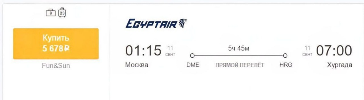 Билет из Москвы в Хургаду на 11 сентября стоит всего 5 тысяч рублей