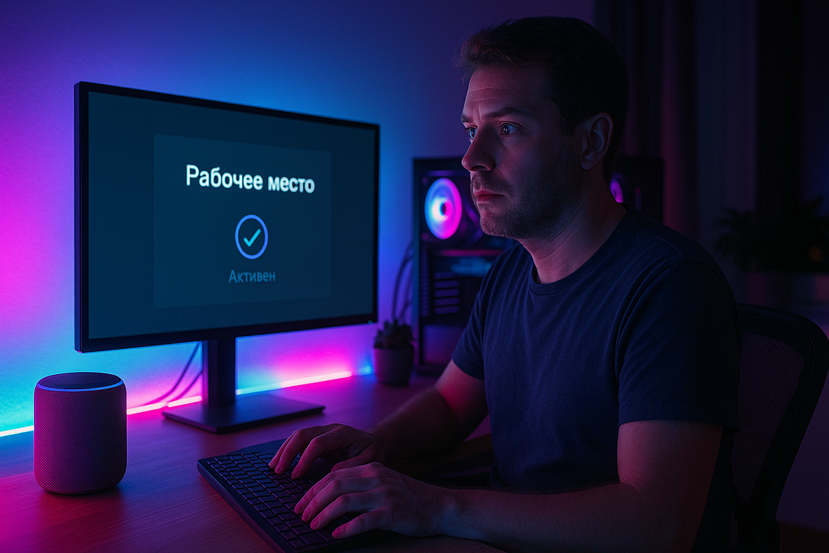 — «Сделайте мне подсветку рабочего места, но чтобы жена думала, что это для работы. На самом деле — для ночных гейминговых сессий». Мы сделали RGB-подсветку, которая переключается по таймеру: днём нейтральный свет, ночью — клубный режим для игр. История: