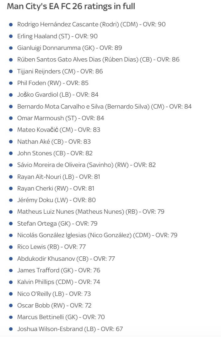 Рейтинг игроков "Манчестер Сити" в EA FC 26 📊
