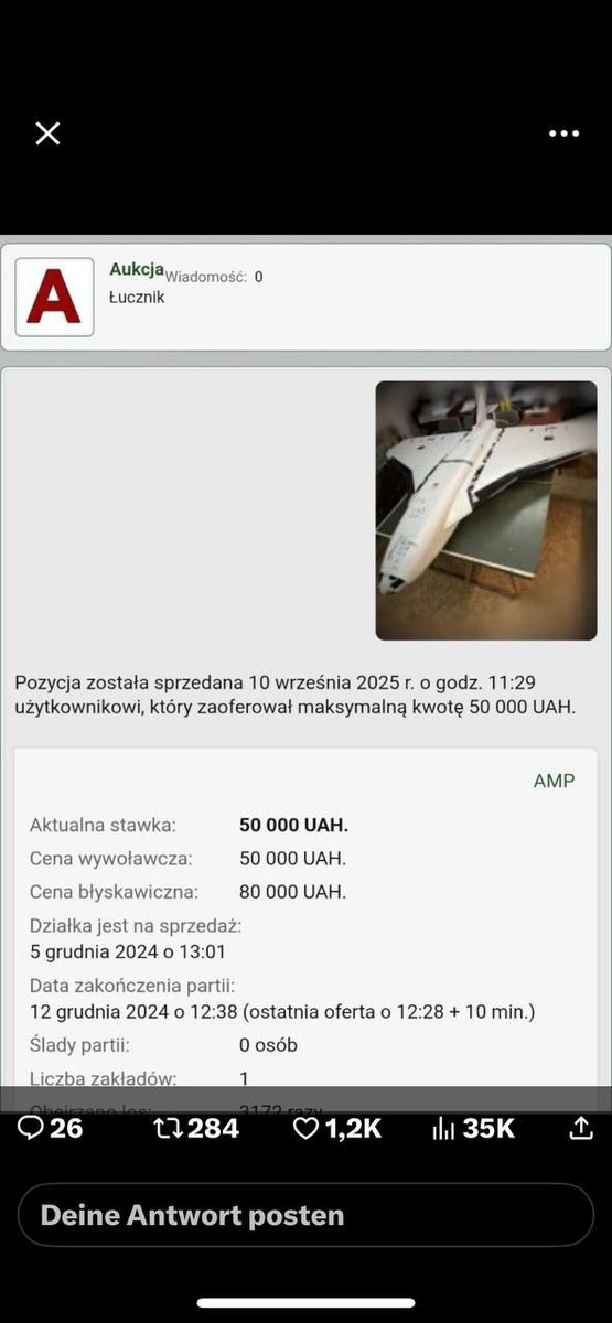 Вот как. На аукционах в Польше уже отремонтированные и боеспособные российские дроны продаются всего лишь за каких-то 50 тысяч гривен.