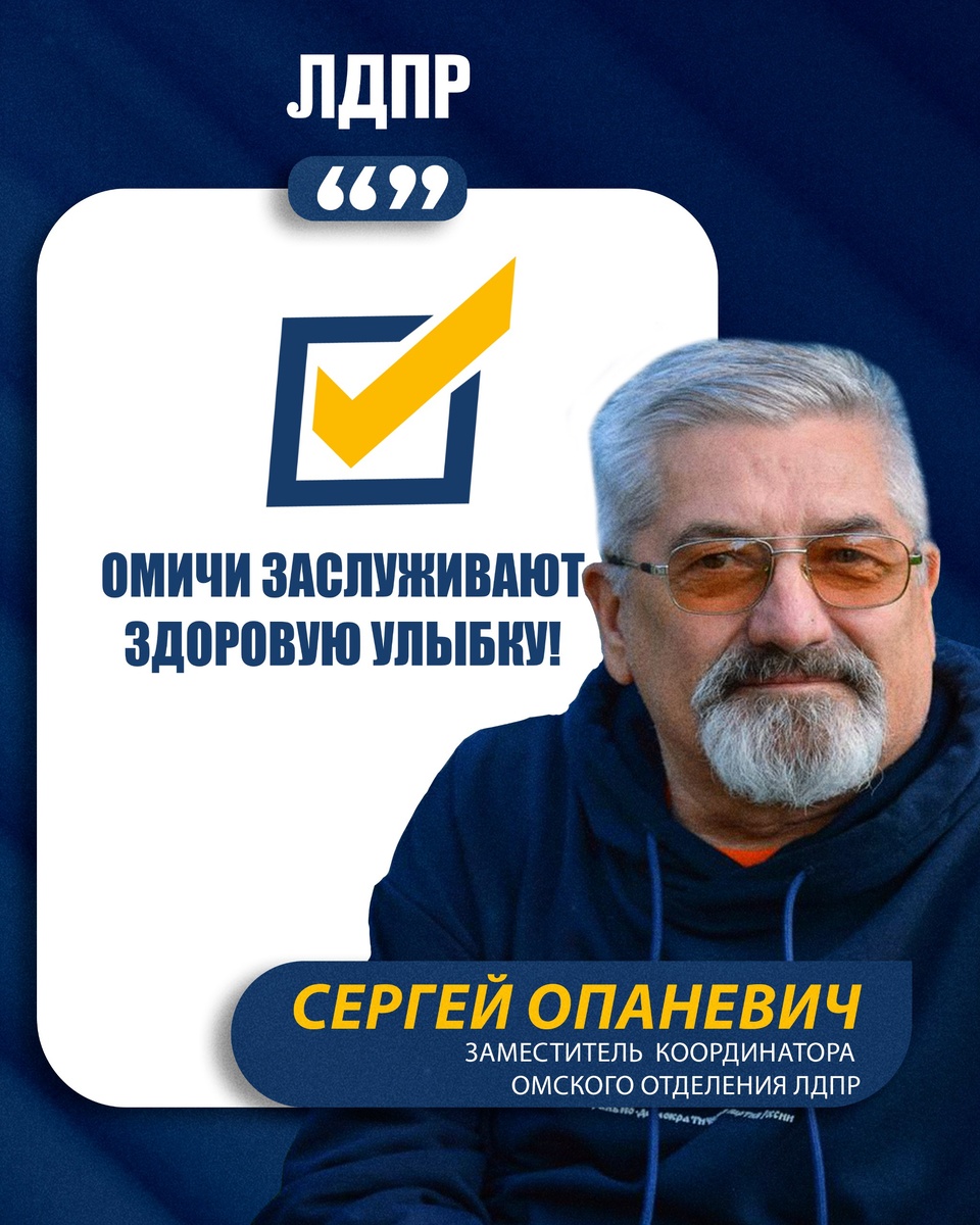 Омичи заслуживают здоровую улыбку! ЛДПР предлагает сделать зубопротезирование доступным для пенсионеров и многодетных семей в нашем регионе. Стоимость услуг высока, а здоровье зубов — важно для общего состояния человека. Как отмечает Сергей Опаневич: «Если не проявлять заботу о пенсионерах и многодетных семьях, то какое мы тогда социальное государство! Эта мера поддержки — вопрос справедливости и реальной помощи омичам». #ЛДПР #Омск #ОмскаяОбласть #Медицина #Стоматология