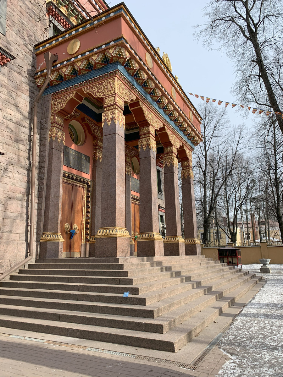 Подкрепившись, еще раз прогуляйтесь по территории и рассмотрите внешнее убранство дацана. Строительство его закончилось в 1915 году. Он был построен за 6 лет по проекту архитектора Г.В. Барановского, который проектировал Елисеевский магазин на Невском проспекте и перестраивал под магазин Елисеева дом на Тверской улице в Москве.