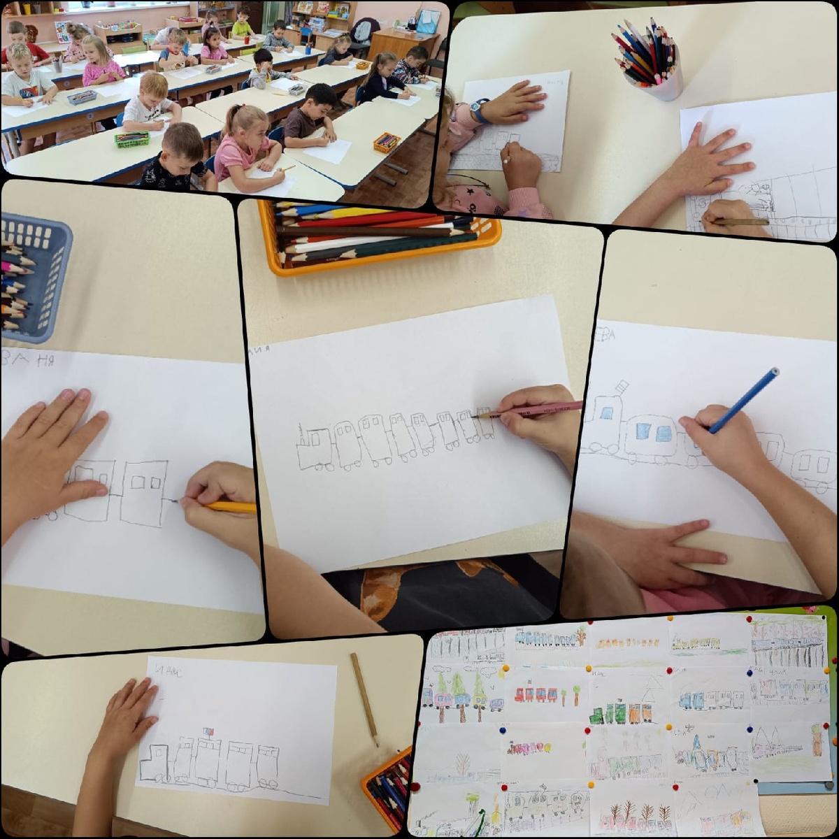 На занятии по рисованию в группе 3.1 "Колокольчик" ребята вспомнили о летних поездках с родителями и о том, на каком транспорте они путешествовали. 🚞Мы обсудили, ездили ли они на поезде, и рассмотрели игрушечный поезд, а также картинки с его изображением. Учились уточнять пропорции и отличия поезда от других видов транспорта. ✏Затем дети нарисовали поезд с вагонами, что позволило им закрепить навыки рисования, развить пространственные представления и воображение. Каждый ребенок вложил частичку своей фантазии в рисунок, что сделало занятие еще более увлекательным! #Школа1596 #ДОНМ #ШколыКолледжиМосквы