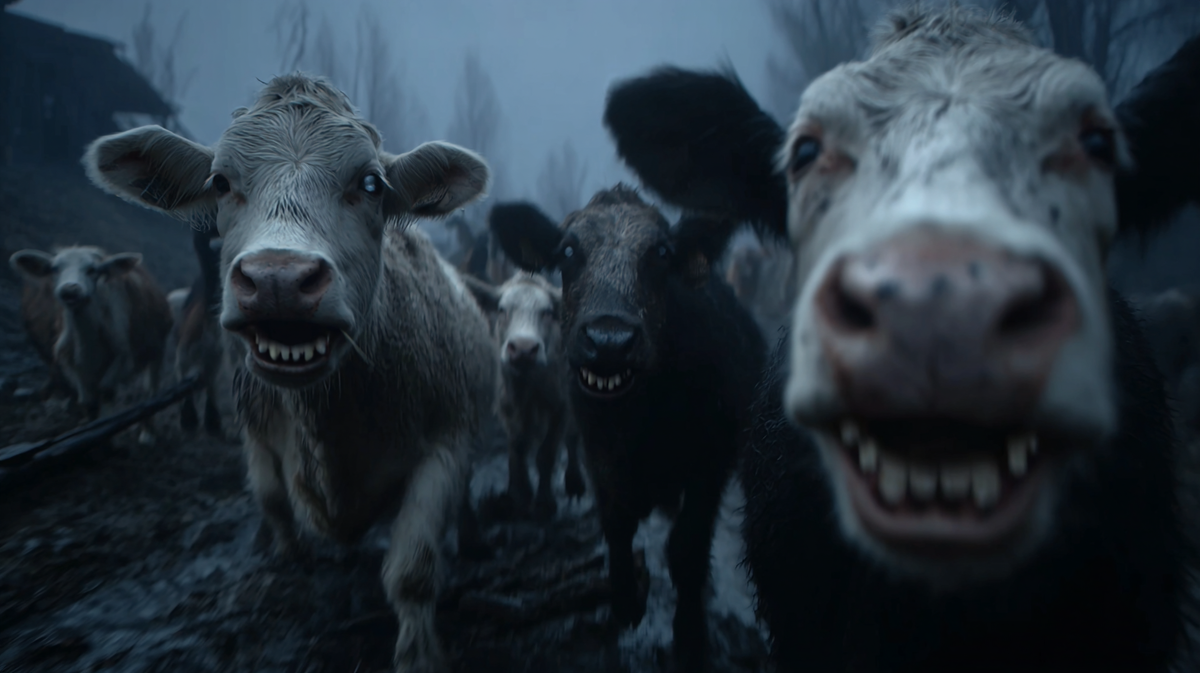 Зорька с оглушительным треском вынесла дверь сарая и отшвырнула меня. Я видел, как из других дворов вырываются коровы, козы, овцы. Они не бежали в панике. Они шли. Единым, целенаправленным потоком на зов. Прямо к тёмной стене леса.