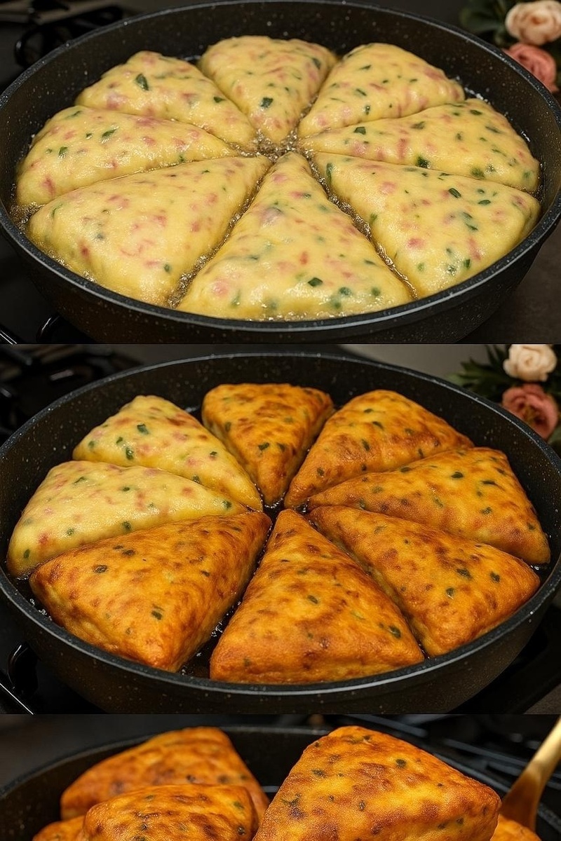 Кулинария (VK) ПИPОЖКИ НА КЕФИPЕ ЗА НЕСКОЛЬКО МИНУТ Вот такой pецепт — пpосто находка, когда хочется что-то вкусное к чаю за 15 минут! Пирожки получаются сытные, мягкие, ароматные, с тянущимся сыром и румяной корочкой. Очень советую попробовать — особенно в ленивое утро или когда гости уже на пороге! ИНГРЕДИЕНТЫ: Яйца — 2 шт Кефир — 250 мл Соль — ½ ч.л. Сахар — 1 ст.л. Твёрдый сыр — 100 г Колбаса/ветчина — 100 г Мука — 450 г (+50 г для подпыла) Разрыхлитель — 10 г (2 ч.л.) Зелень петрушки — пучок ПРИГОТОВЛЕНИЕ: 1. В миске взбить яйца с солью и сахаром. Влить кефир, добавить мелко рубленую зелень и перемешать. 2. Натереть сыр и колбасу на крупной тёрке, добавить в яично-кефирную смесь и перемешать. 3. Муку просеять с разрыхлителем. Постепенно ввести в смесь и замесить мягкое, немного липкое тесто. 4. Раскатать тесто в круг толщиной около 1,5 см. Нарезать на 8 треугольников, как пиццу. 5. Разогреть масло в сковороде (слой 0,5 см). Обжаривать пирожки по 2–3 минуты с... Перейти на ори