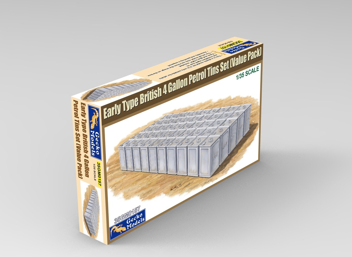 Китайская Gecko Models показала детали своего набора британских канистр в масштабе 1/35: Early Type British 4 Gallon Flimsies Petrol Tins Set (Value Pack) - каталожный номер 35GM0157