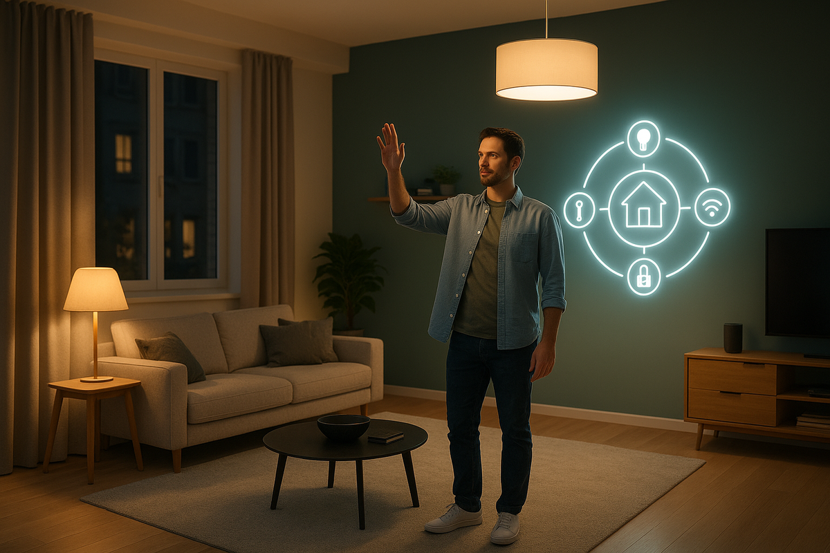 Когда мы говорим об умном доме, обычно представляем голосовые команды или приложение на смартфоне. Но однажды к нам пришёл клиент с совершенно неожиданным запросом: — «Хочу управлять домом только руками. Никаких голосов, никаких кнопок. Жесты должны быть моим главным инструментом». Сначала мы подумали, что это звучит как фантастика. Но чем больше мы слушали его, тем яснее становилось: в этом есть своя логика. Клиент — молодой мужчина около 30 лет, дизайнер по профессии. Он рассказал: «Я целый день работаю с графикой, руками, движениями. Для меня естественно управлять пространством жестами. Голосом я не люблю: кажется странным разговаривать с техникой. Смартфон? Я его теряю каждые два дня. А вот руки — они всегда со мной. Я хочу, чтобы дом понимал их так же, как компьютер понимает мышку или планшет». Для нас это был вызов. Но мы решили попробовать. Мы построили систему на основе: Базовые жесты: Когда система была готова, мы пригласили клиента на тест. Он вошёл в гостиную, поднял ладонь