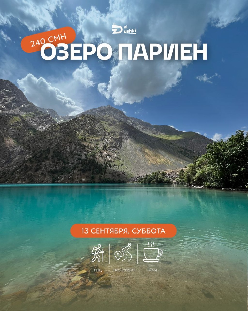 Немного информации о туре: ▶️Выезд от Шоколодницы ( супермаркет Ситора), будет в субботу в 6:00. Собираемся в 5:45. 🚗Дорога займет около 2,5 часов. По пути мы остановимся перед тонелем перевала Анзоб, для небольшого перерыва, и место фотозоны. 🏕С момента старта до самого озера около 5,5 - 6 км. Набор высоты около 700 м. Сложность похода 7/10. Вначале будет немного затяжной подъем, около 1,5 км, далее более менее нормальная тропа. Перед самым озером еще один небольшой подъем. Само озеро расположено на высоте около 2750 над уровнем моря. 🍔По приходу на озеро, организуем пикник. Поэтому нужно взять с собой перекус для себя и немного чтобы поделиться с другими. Около озеро организуем горячий чай. 🧥По одежде. Так как погоду обещают солнечную, головной убор обязательно. Около озера ветренно, поэтому можно азять с собой лёгкую курточку. Обувь должна быть с твердой подошвой, желательно закрывающий голеностоп. Не одевайте обычную обувь в которой вы ходите в городе, она вас может подв