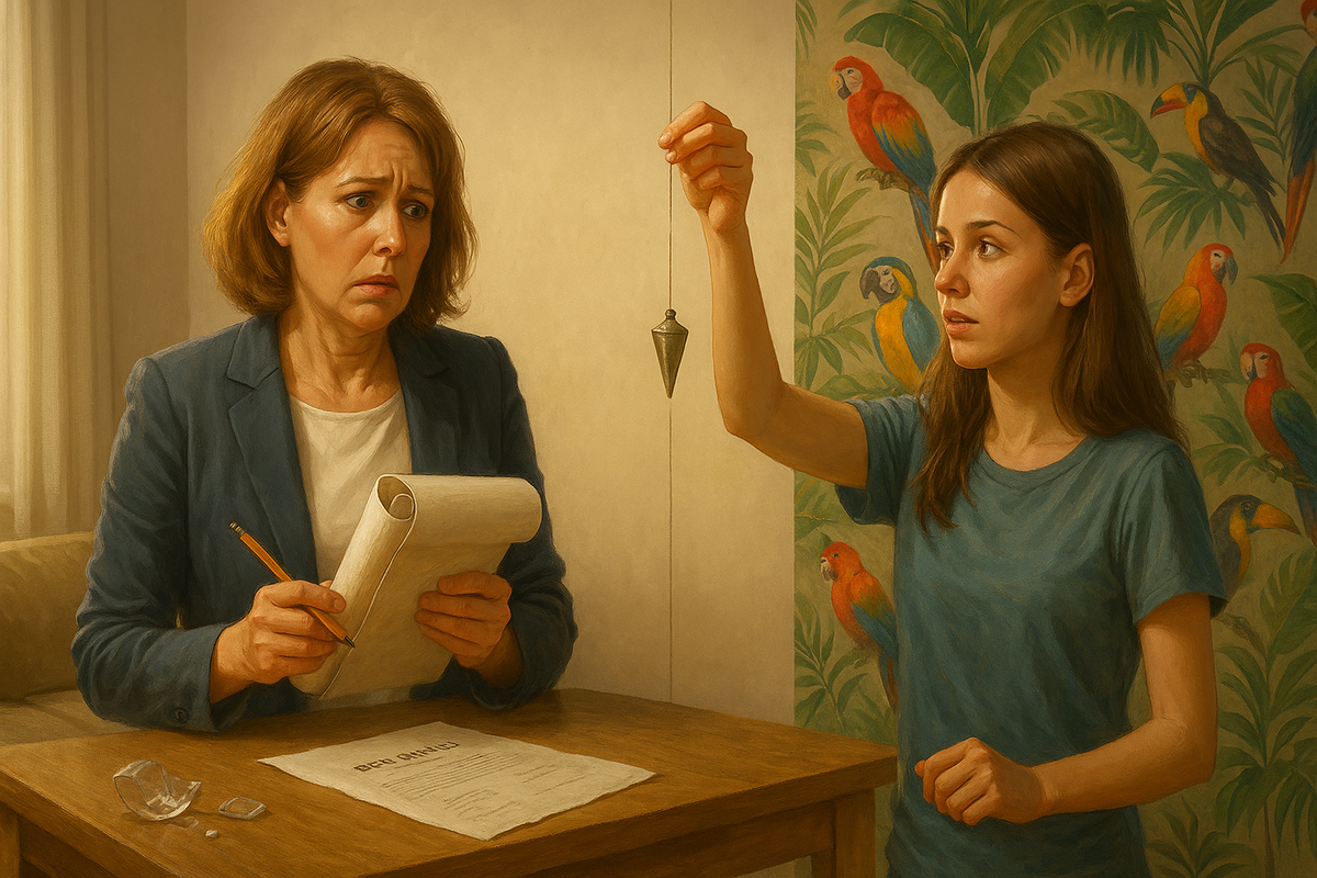 — Мне нужно вертикаль провести, — объяснила она. — А то обои криво лягут. Инструкция говорит — от центра клеить, чтобы рисунок сошелся.