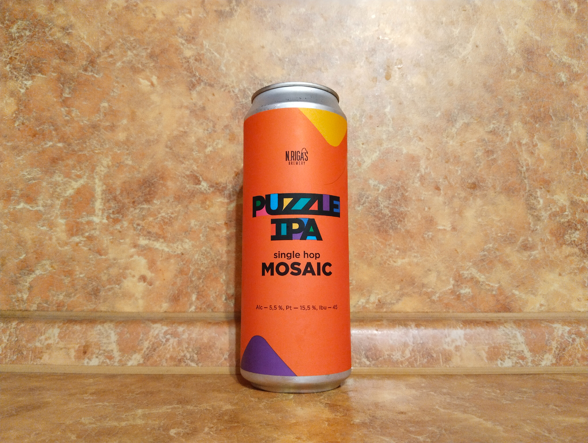 Пивоварня New Rigas, всегда, у меня, ассоциировалась с крафтом нижней категории - простенько, вкусненько, но без изысков и за цену до 200 тугриков. Есть много лучшего, но небольшая стоимость продукции пивоварни, иной раз, решает. И частенько решала, благо Штофмаркет, где, в основном, новорижские пивы брал, от дома ближе всего, но пришёл тот день - купил, со скидкой, неопробованный образец, пришёл домой, налил пенное в бокал, сделал глоток и понеслось... Новая серия IPA Single hop - PUZZLE. Этой серией мы хотим вместе с вами собрать один большой и яркий пазл хмелей, которые являются основной составляющей всеми любимого стиля - IPA. Первым пазлом будет один из самых популярных американских хмелей - MOSAIC. Этот хмель обладает ярким хвойно-цитрусово-фруктовым ароматом, обладает гармоничным вкусом с мягко-выраженной горечью. Алкашка/плотность - 5.5%/15.5%. IBU - 45. Стиль - AIPA. Объём - Русская пинта 0.45 л. Цена - что - то около 150 тугриков в Штофмакете, с учётом скидки. Состав - в