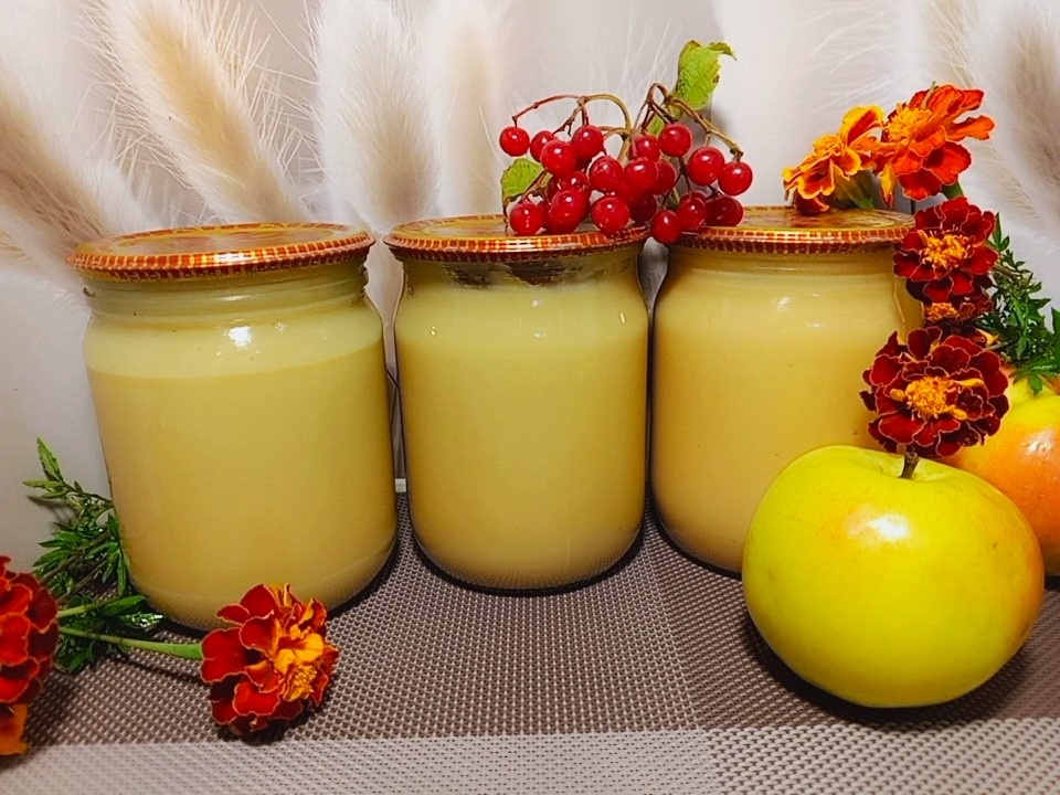 Раньше я клала 1 банку сгущенки на 5 кг яблок. Потом увидела в интернете этот рецепт. Здесь банка сгущенки идет на 2 кг. Решила приготовить, очень вкусно. 2 кг яблок в очищенном виде, 1 банка цельного сгущенного молока, 250 мл воды. Я еще добавила 2 ст.л. сахара. У меня яблоки были антоновка. Так, в рецепте сахара нет. Пробуйте на вкус. Яблоки очистить от кожуры и сердцевины. Порезать небольшими кусочками. Налить воду, закрыть крышкой и распарить до мягкости, помешивая. Примерно 20 - 30 минут. Затем пробить блендером до гладкой массы без комочков. Добавить сгущенное молоко, хорошо перемешать. Довести до кипения, все время мешать, чтобы не пригорело. Варить 5 минут. Разложить по стерилизованным банкам. Закатать прокипяченными крышками. Перевернуть и укутать до полного остывания. Приятных заготовок!!!